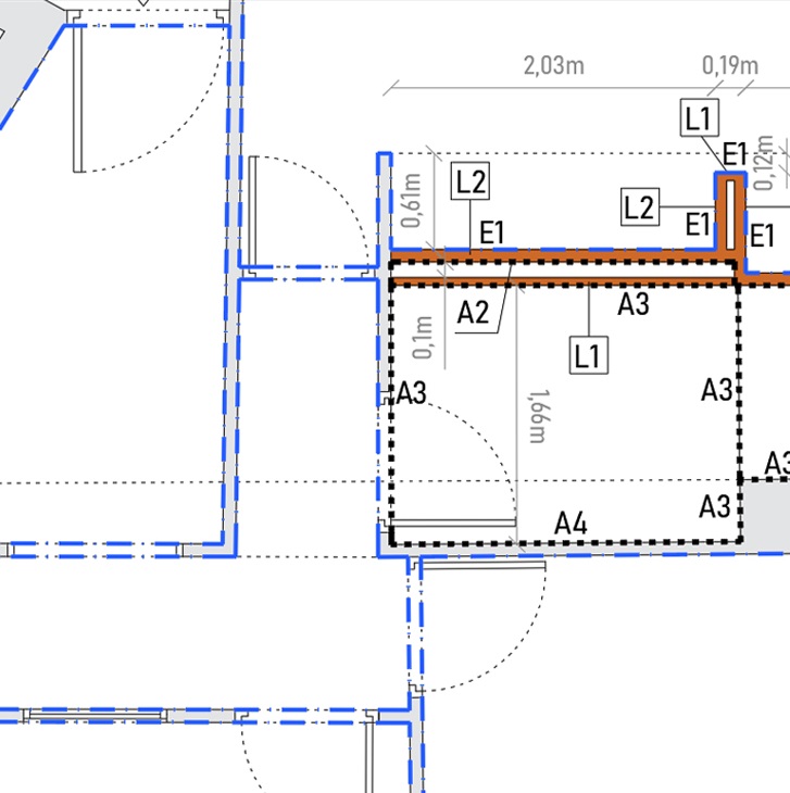 Elaboraremos planos de albañilería con el tipo de tabiquería a utilizar, tipos de trasdosados, insuflados de aislamiento en cámara de aire, alisados, pintados, recrecidos de tabiquerías, azulejos y especificaciones técnicas y estéticas de colocación, etc.