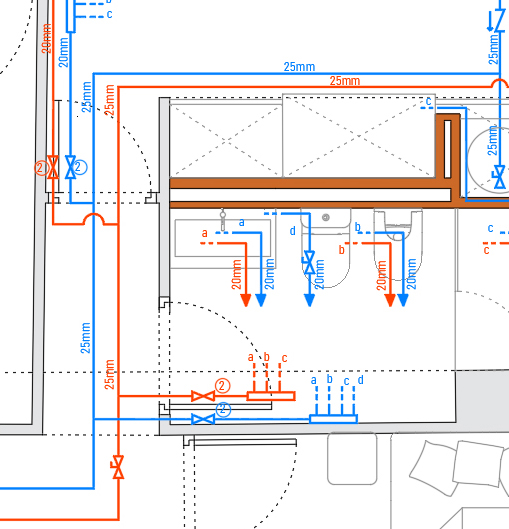Calcularemos las instalaciones de fontanería de su vivienda para que cumplan la normativa y sean seguras y elaboraremos un plano de fontanería con secciones, trazados y conexionados a la red existente.